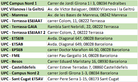 Pots utilitzar els punts del Campus Terrassa, encara que per defecte tinguis assignat un punt diferent.